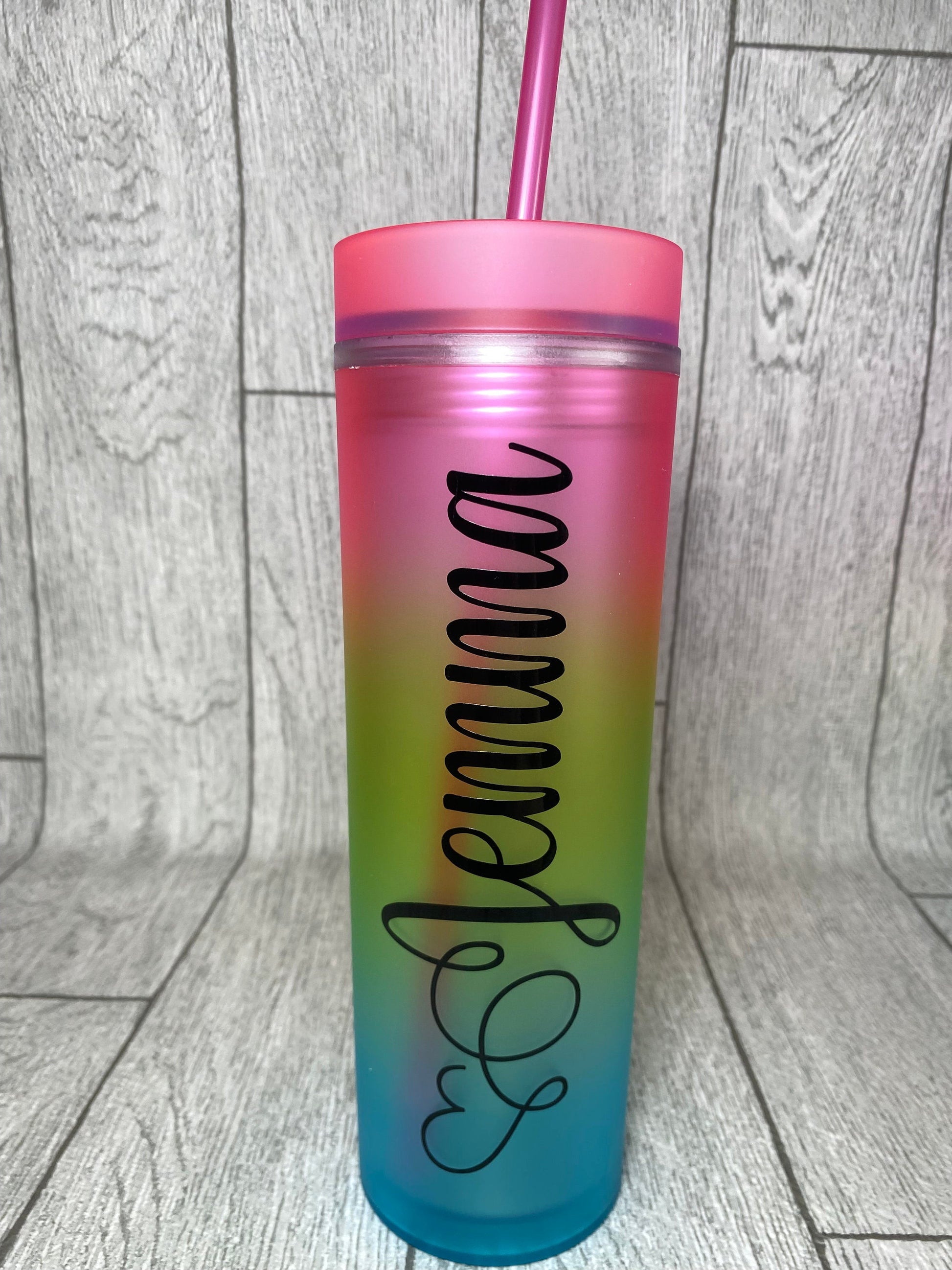 These colourful tumbler cups are made with a screw top lid, and straw,