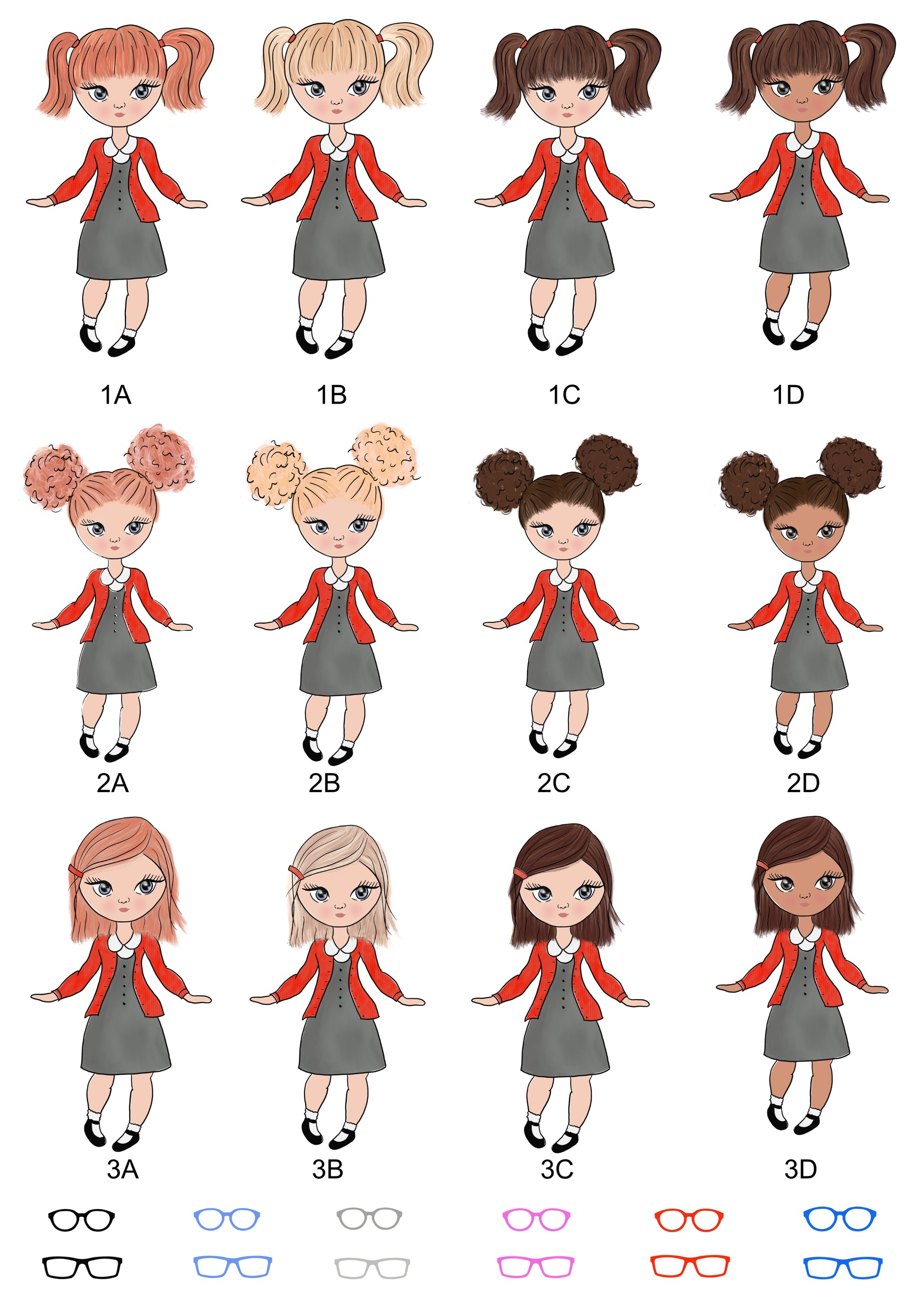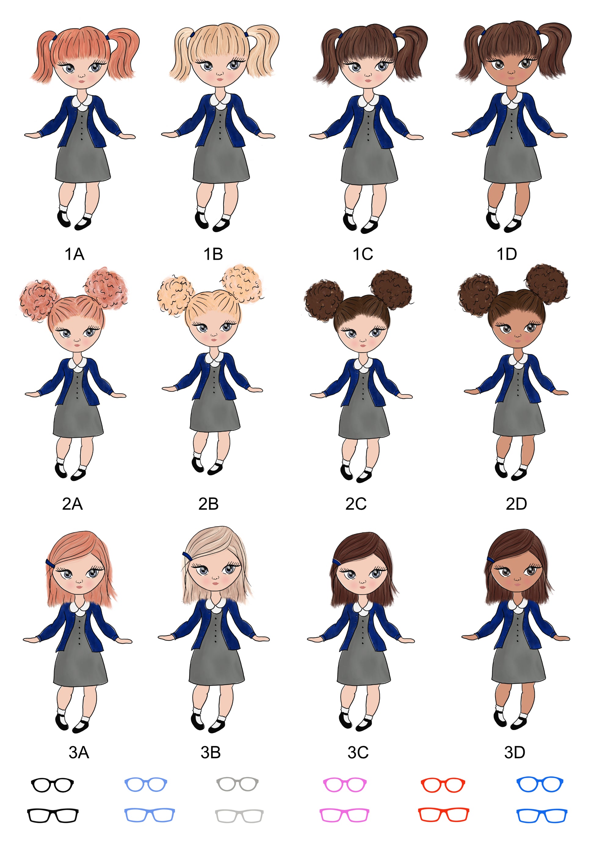 School child is available in a range of Uniform colours and Hair and Skin Tones