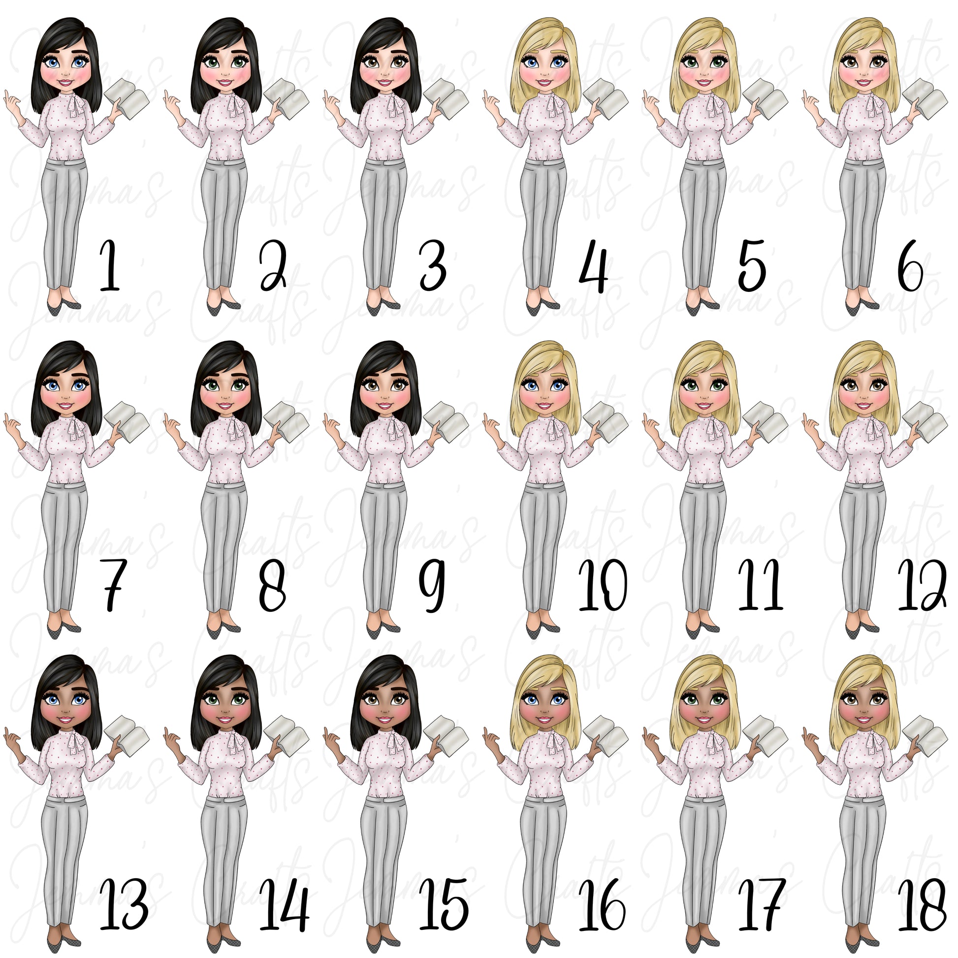Available with various Hair Colours, Skin Colours and Eye Colours!